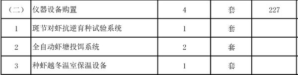 建设地点广东省深圳市龙岗区大鹏新区南澳镇,主要建设内容为新建亲本扩繁和苗种培育车间1250平方米,改造实验室150平方米、种虾池塘防渗12000平方米、养殖废水处理设施1000立方米,硬化池塘道路3000平方米,铺设雨污分离管道880米;购置仪器设备4套。总投资1000万元,全部为中央预算内投资。